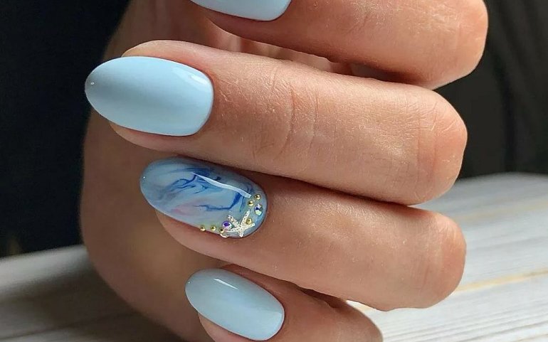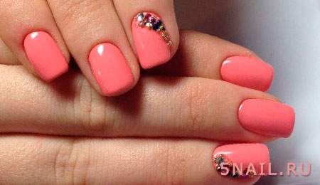 Красивый однотонный маникюр с декором на лето
