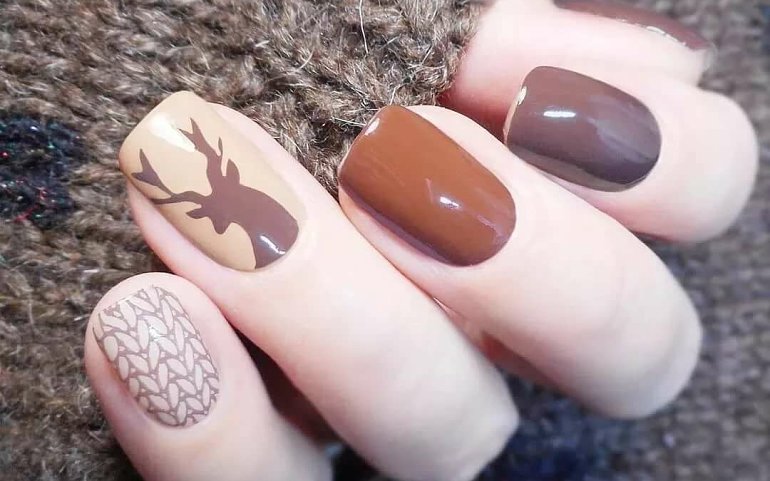 В холодное время года хочется согреться, поэтому в моде «вязка» в бежевых, молочных, розовых тонах. О новогодних праздниках напомнит сине-белая и красная гамма со снежинками, блестками, кристаллами, зеленой хвоей. А для работы можно выбрать спокойные бордовые, графитовые, приглушенные малиновые оттенки.