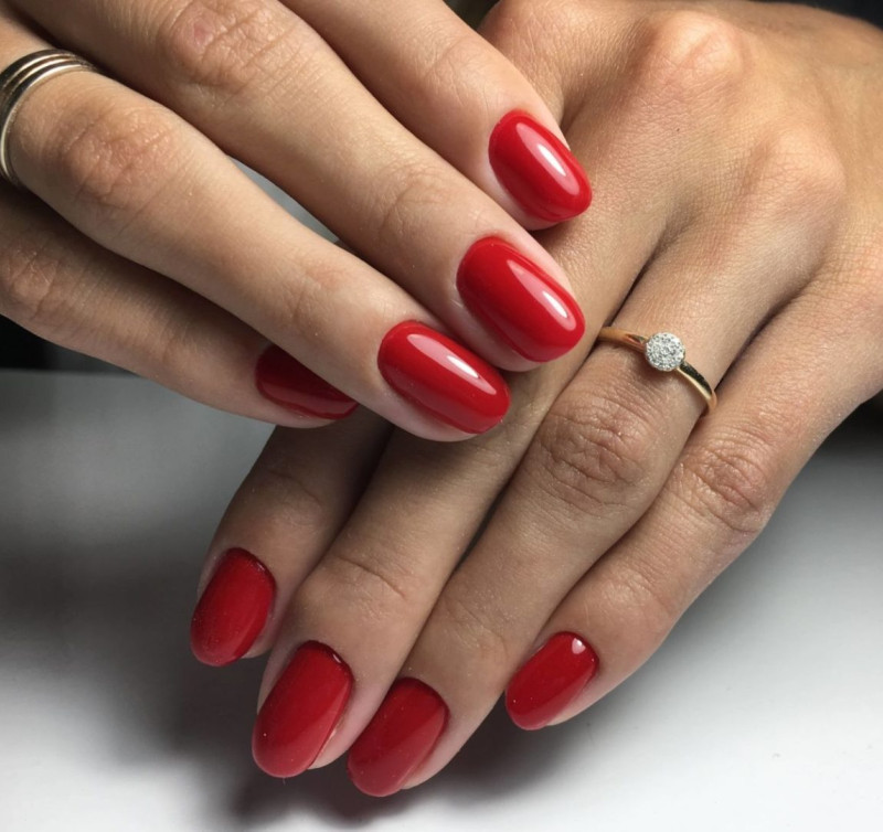 Также выбирая красный насыщенный тон, следует обращать внимание на длину ногтя. Наиболее выигрышно он будет смотреться на коротких ногтях квадратной или овальной формы