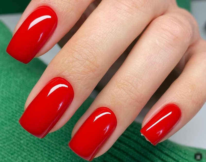 Однотонный красный маникюр