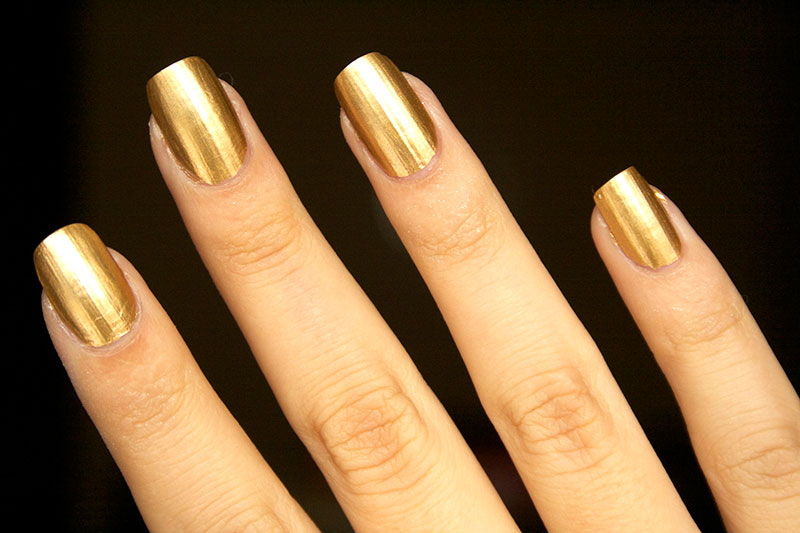 Несомненно, такие ногти смотрятся весьма эффектно и стильно, но не стоит перебарщивать с красотой. Используйте золотой лак только в особенных случаях, например в клуб или на вечеринку.