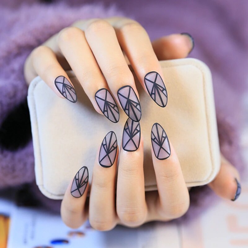 Длинные ногти хороши для выполнения геометрических узоров разной сложности. Геометрия – универсальный стиль, который держится в тренде уже несколько лет и интерес к нему не снижается. В 2022 году он будет иметь спрос.