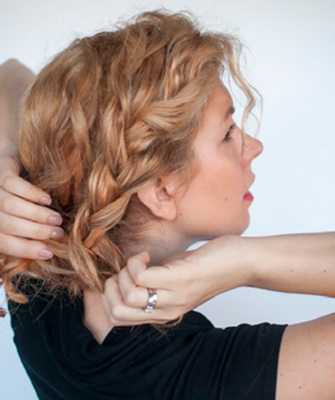 - Далее скрутить косу в бублик или завернуть на затылке, дабы спрятать кончики волос.