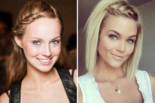 - Встречается и такое оформление как боковые косички, сделанные из верхних прядей. Они заплетаются по бокам и соединяются на затылке. Косы могут быть обычными или французскими.