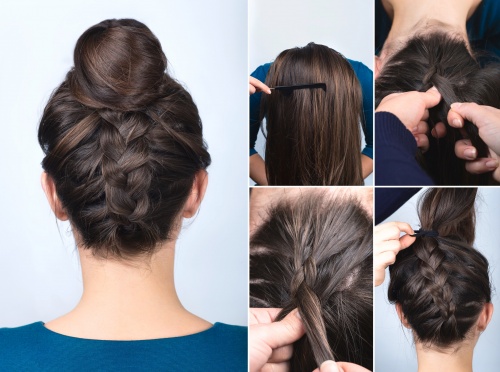 - из искусно переплетенных между собой косичек может составляться пучок или своеобразная корзинка.