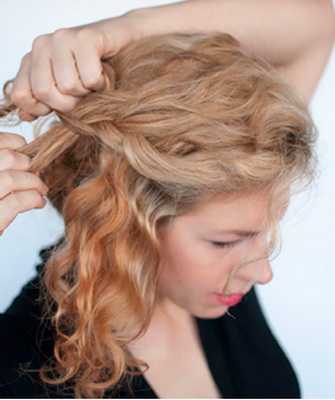 - Выделите маленькую часть волос у виска и закрутите ее в жгут.