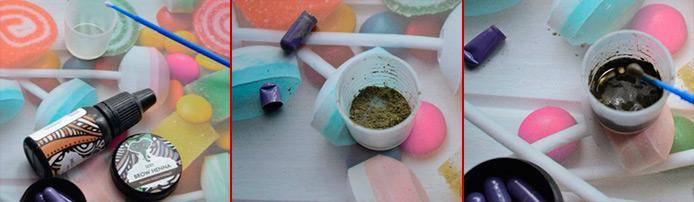 - В чистую пластиковую посуду насыпают чайную ложку порошка.
