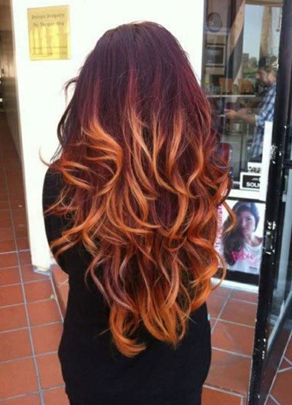 Рыжеволосым позволены любые эксперименты в технике Омбре. Им хорошо подходят каштановые, золотистые, бронзовые оттенки. Правило только одно: цвет кончиков должен быть на пару тонов светлее, чем корни.