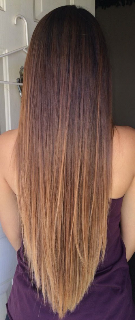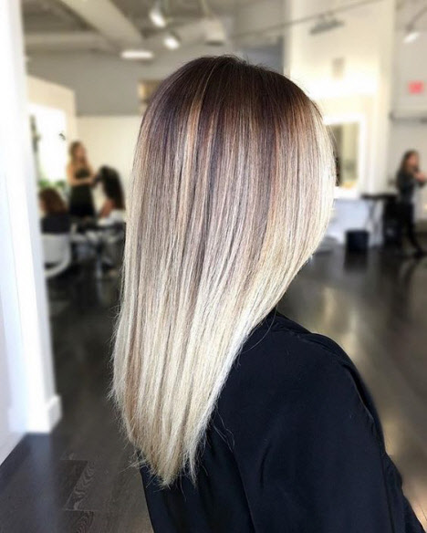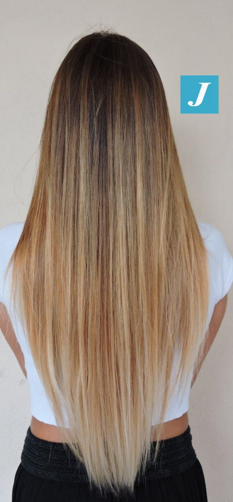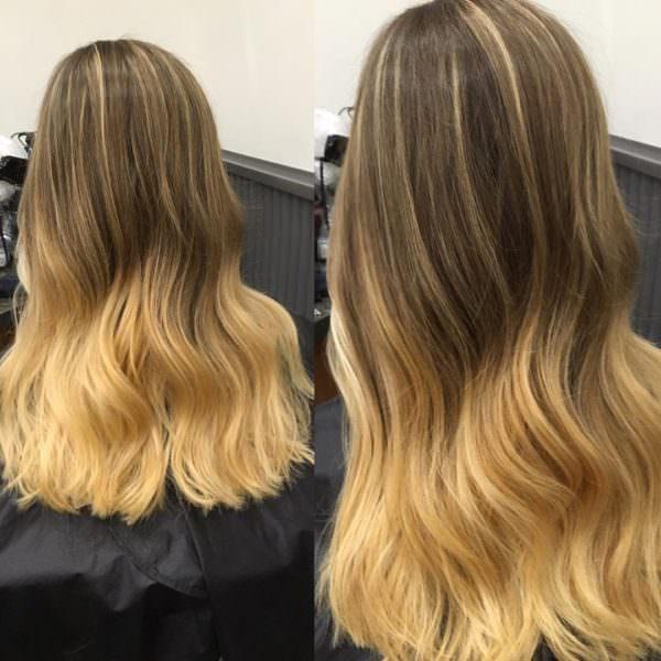 Считается одной из техник колорирования. Выполняется по всей длине волос в виде переходов от тёмных к светлым оттенкам. Подходит для каскадных стрижек.