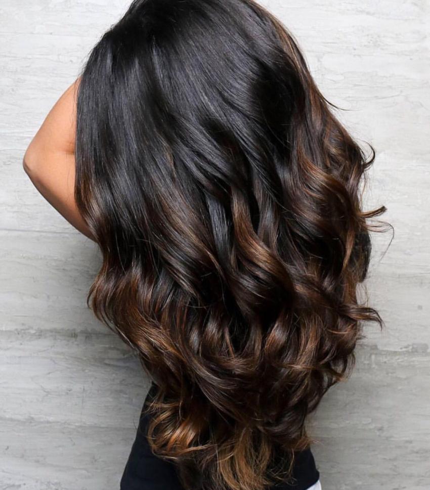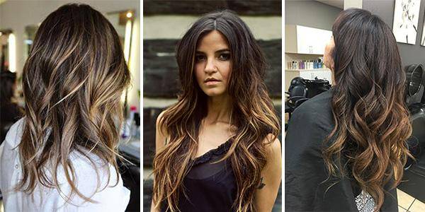 Балаяж на темные длинные волосы, фото