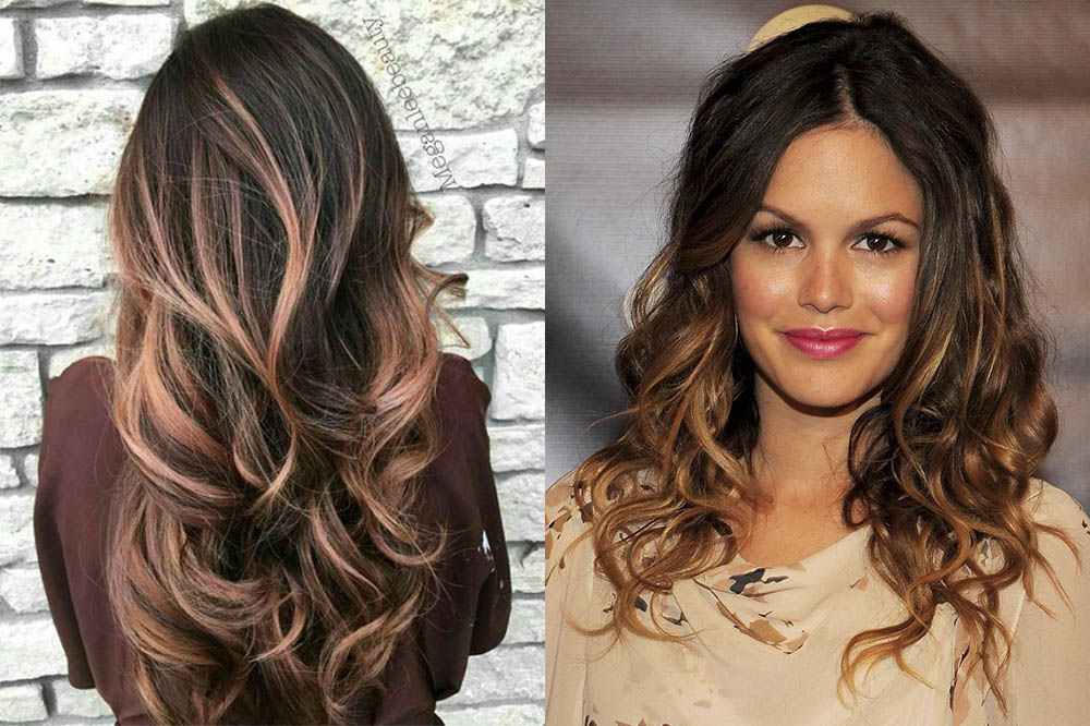 Балаяж на темные волосы, фото. Особенно красиво смотрится на вьющихся волосах