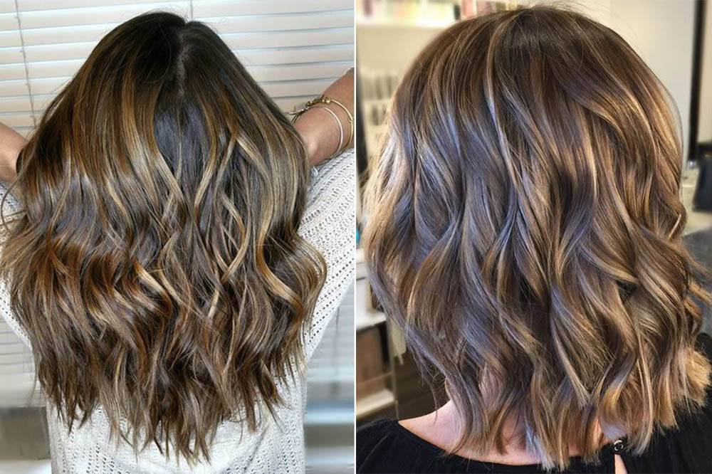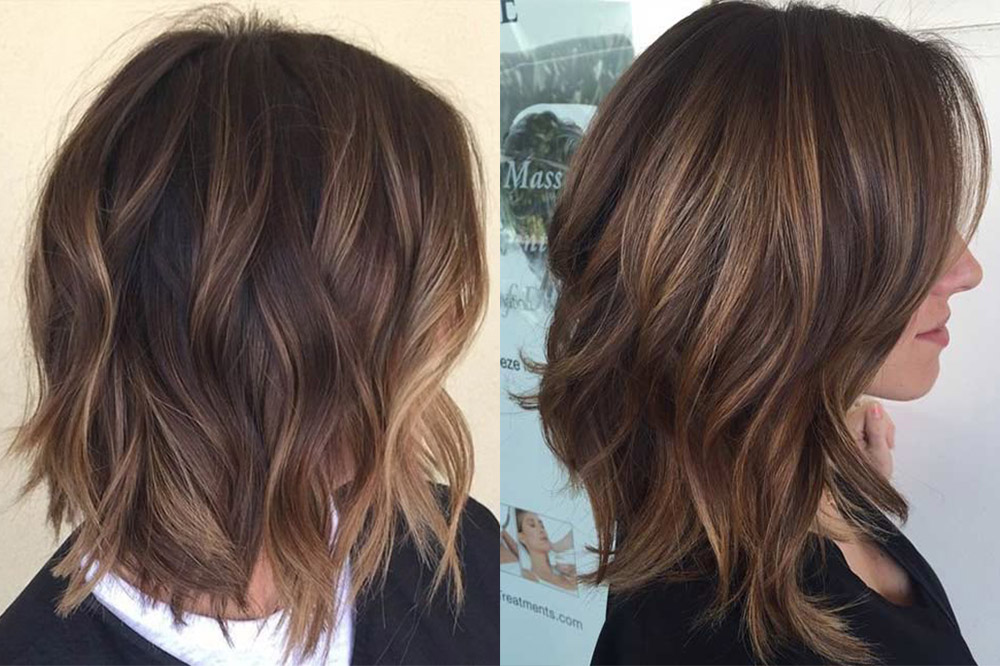 Балаяж на темные волосы средней длины, фото