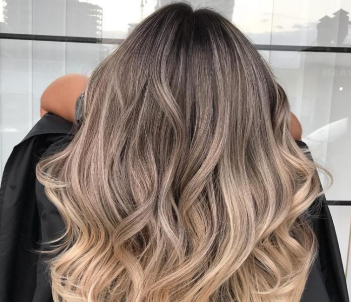 - омбре с градиентным переходом от темной теменной зоны в очень светлым концам, придающим видимость естественно отросших корней;