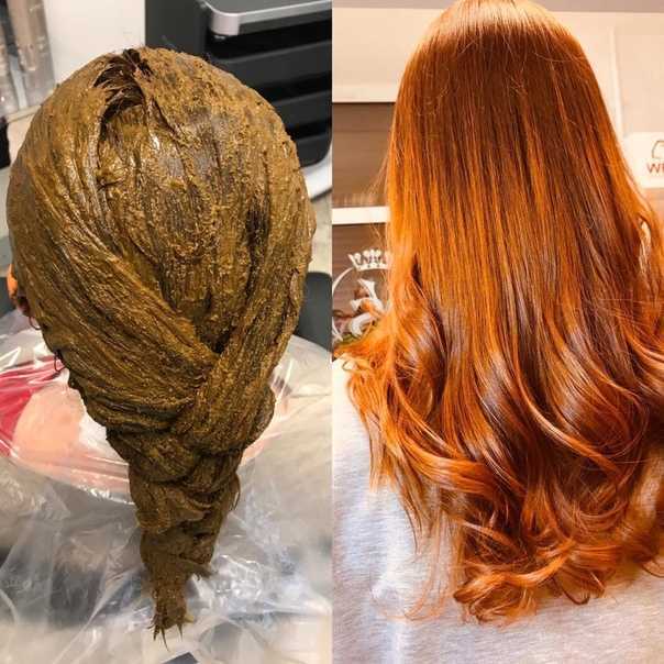 Состав необходимо нанести на волосы и покрыть их пищевой пленкой. Через 2 часа волосы тщательно промываются. Для получения насыщенного рыжего цвета с медным оттенком хна (4 пакетика) должна разбавиться водой до получения кашеобразного состояния. Затем в смесь следует добавить мед (2 ложки). Для сухих локонов в смесь добавляется яйцо.