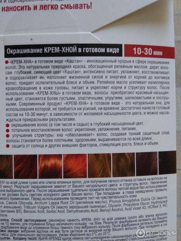Красящие способности у продукта высокие, но результат будет напрямую зависеть от исходного оттенка, а также технологии, гормонального фона, состояния волос. Если на них уже имеется химическая краска, то результат также может быть непредсказуемым или хна просто не сработает. Не стоит искать таблицы с оттенками хны в интернете, шанс попасть в нужный цвет минимальный. Лучше ориентироваться на данные, которые дает производитель. Чем дороже и качественнее хна (индийская), тем больше вероятности провести удачное окрашивание.