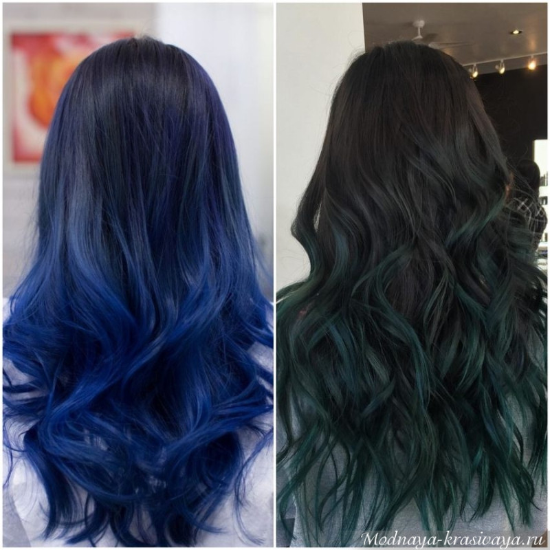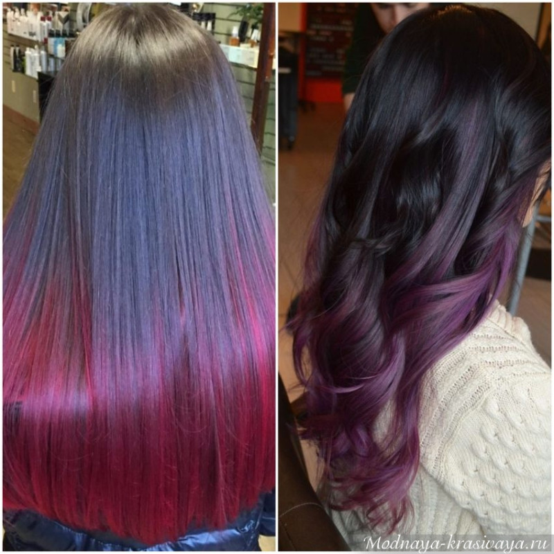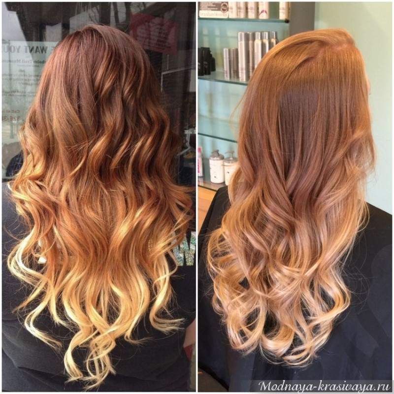 - Идеальный вариант – плавный переход от спокойного цвета в верхней части волос до насыщенного к кончикам.