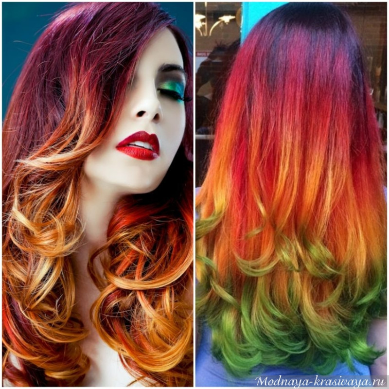 Для тех, кто обладает светло-русыми волосами, стоит обратить внимание на окрашивание с ореховым, молочным и янтарным цветом. Кроме классических оттенков стоит подумать о ярких оранжевых, красных или розовых тонах для креативного образа