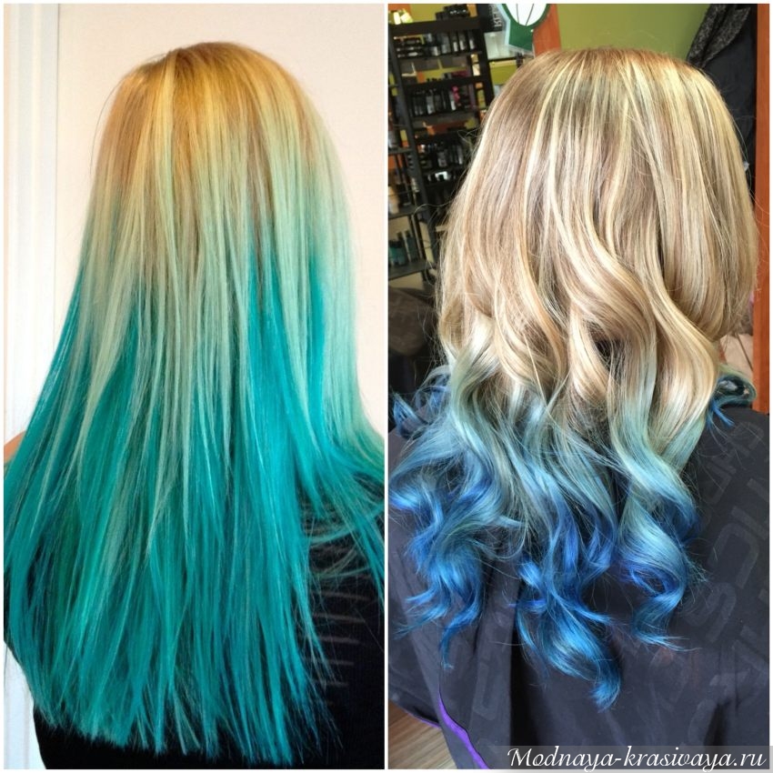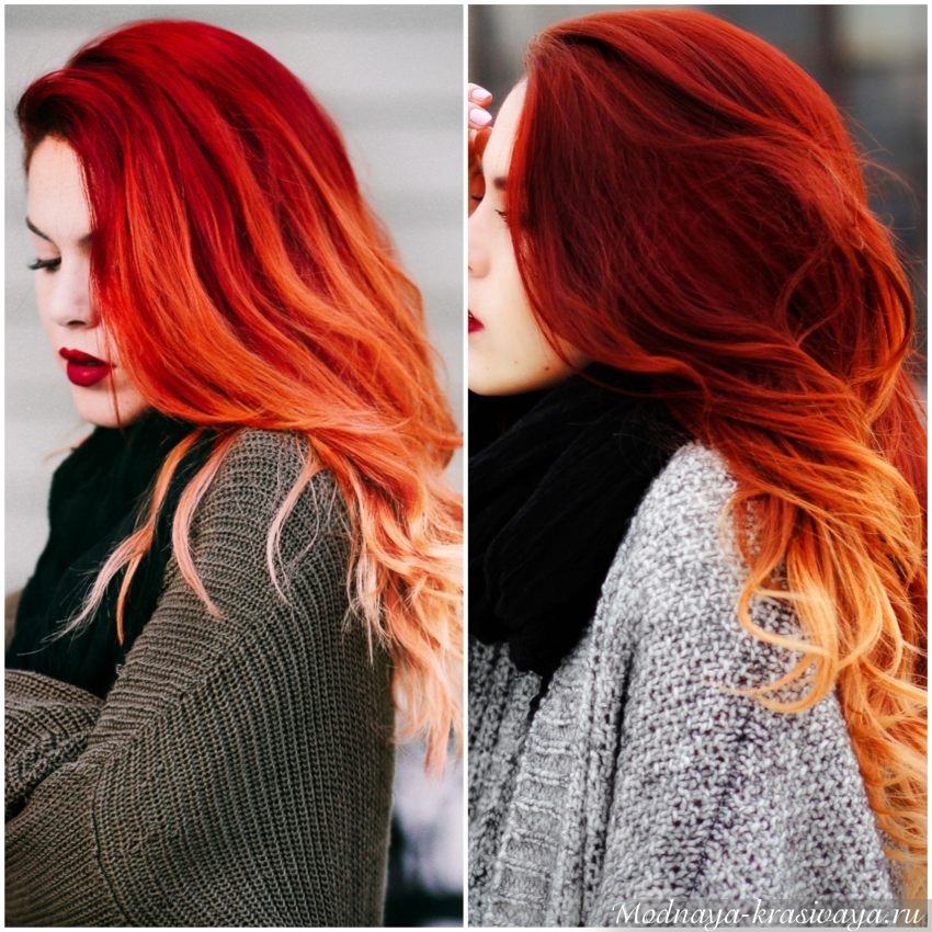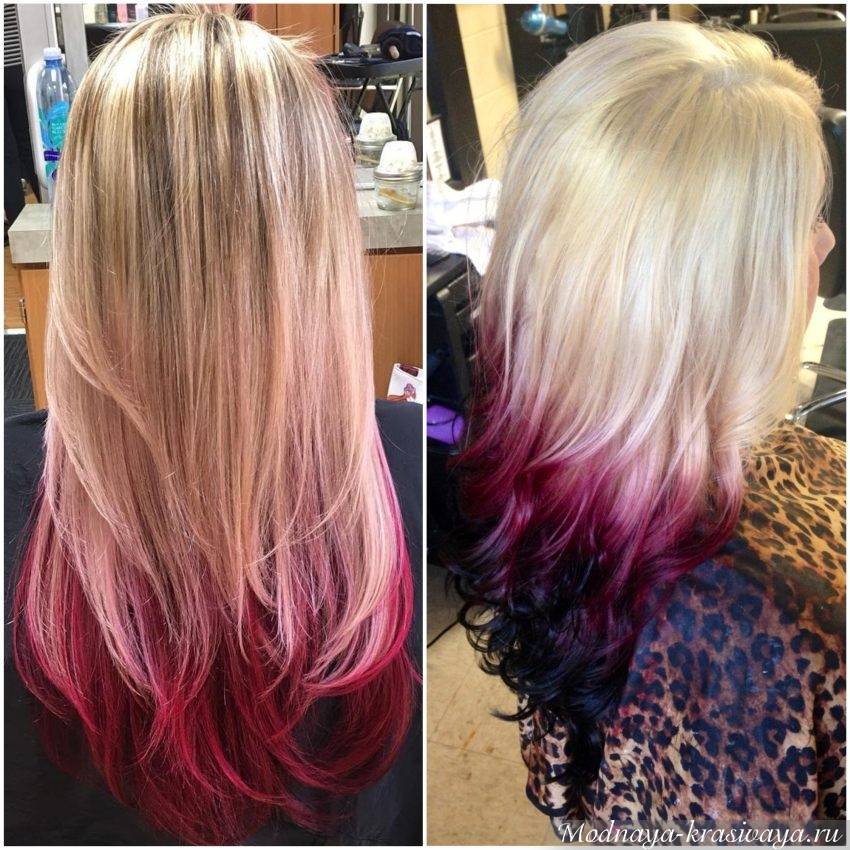 - Идеальный вариант – плавный переход от спокойного цвета в верхней части волос до насыщенного к кончикам.