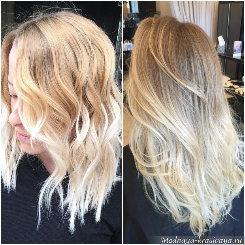 Современная техника окрашивания волос – один из модных трендов. Задача мастера – добиться естественных, плавных переходов цвета от тёмных корней к светлым кончикам. В результате должен получиться эффект выгоревших волос. Блонд «растушёвывается» по всей длине, корни выглядят более объёмно за счёт глубокого цвета.