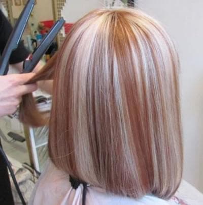 - Мелирование. Обесцвечивание определенных тоненьких прядей методом штопки. Выполняется при помощи шпикуля или, если волосы короткие, на силиконовой шапочке.