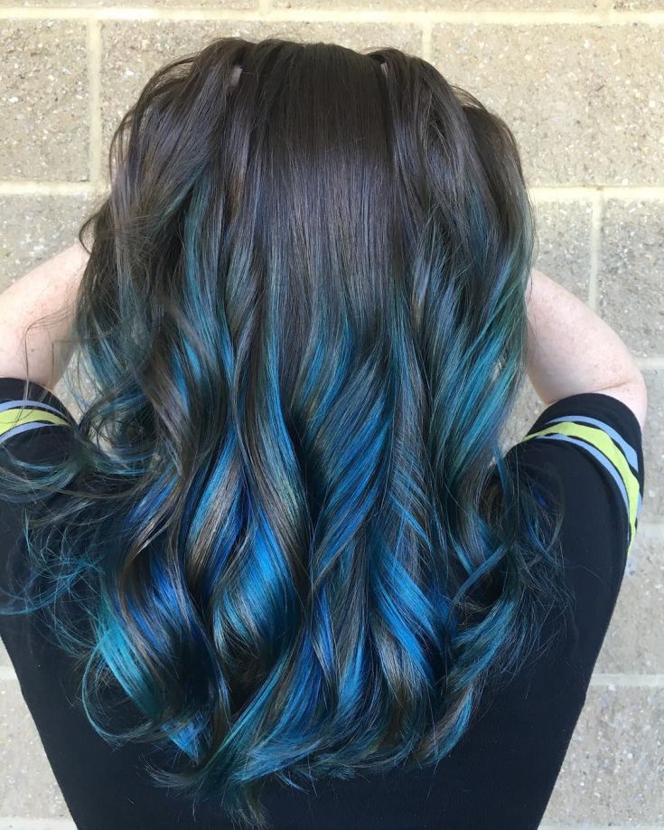 - Американское – также подойдет темноволосым девушкам. Правда, эту прическу обычно предпочитают гораздо более смелые и экстравагантные особы, так как не каждая решится покрасить в голову в несколько цветов, как спокойных, так и ярких, красочных. В этом варианте мелирования используется фольга. А длинные локоны, сделанные в этой технике, будут по-настоящему бесподобны.