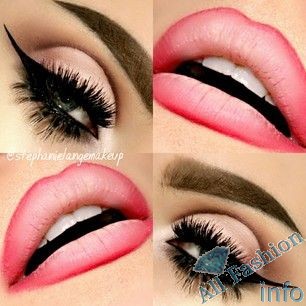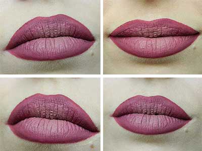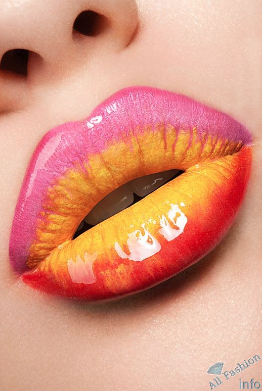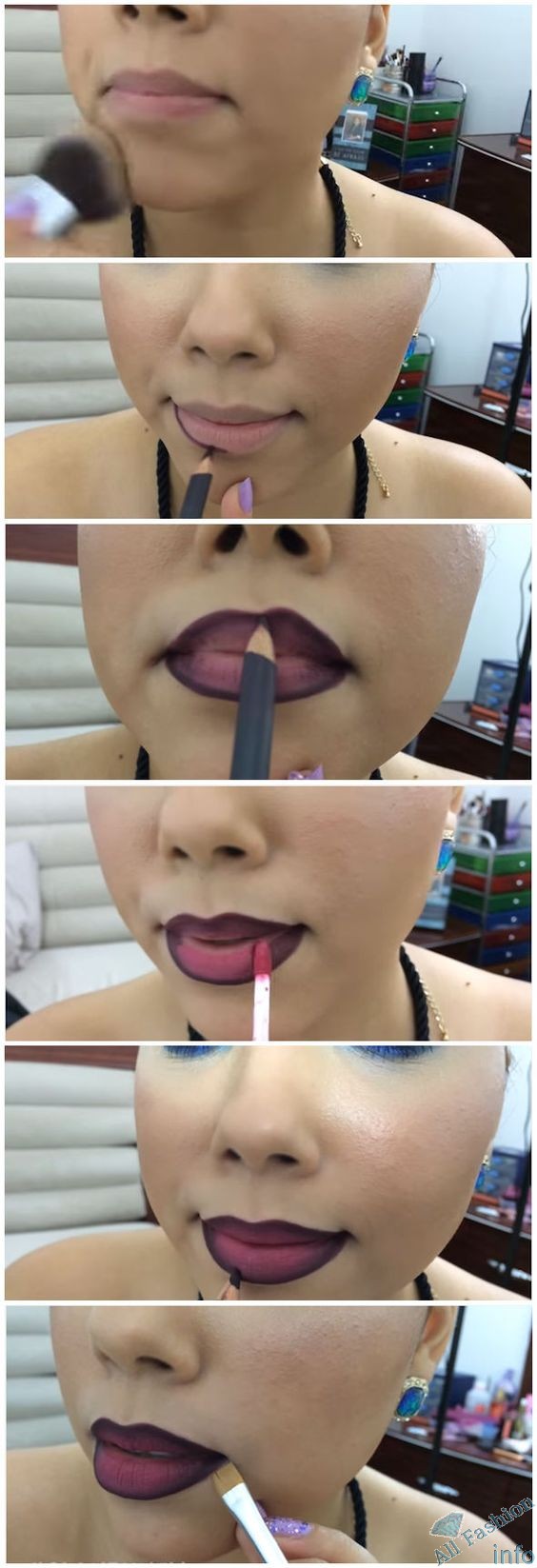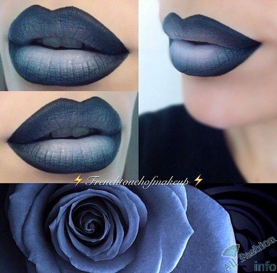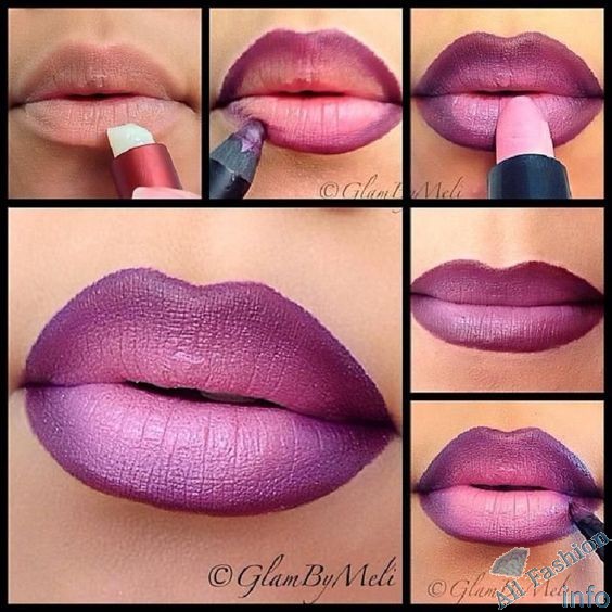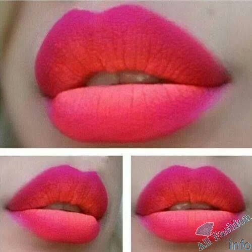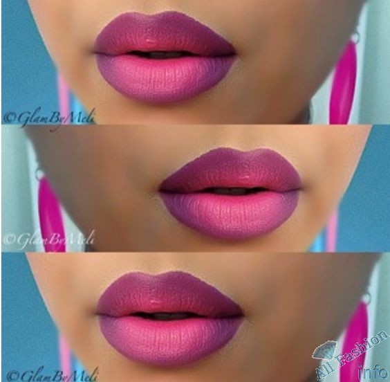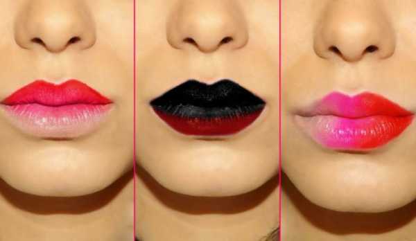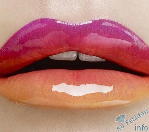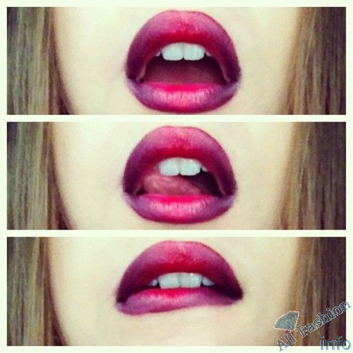 Предусматривает изменение цвета макияжа сверху вниз или от контура рта к центру. Имеет несколько разновидностей.
