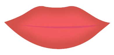 Вертикальная полоса через обе губы. Более светлая даст эффект пухлых губ, темная – уменьшит их объем. Комбинация светлой полосы на одной половине губ и темной на другой- позволяет визуально откорректировать величину губ до необходимой.