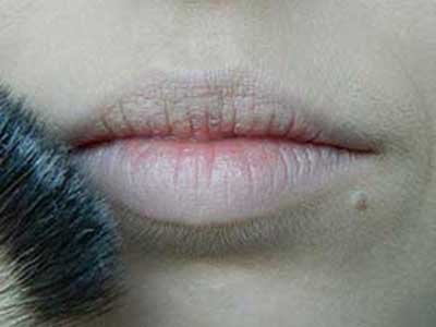 По вертикали края губ темные, внутренняя полоса светлая. Увеличивается объем губ.