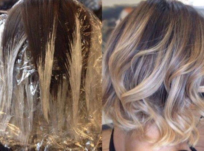 - окрашивание делается вертикально от руки, без использования шапочек или фольги как в мелировании;