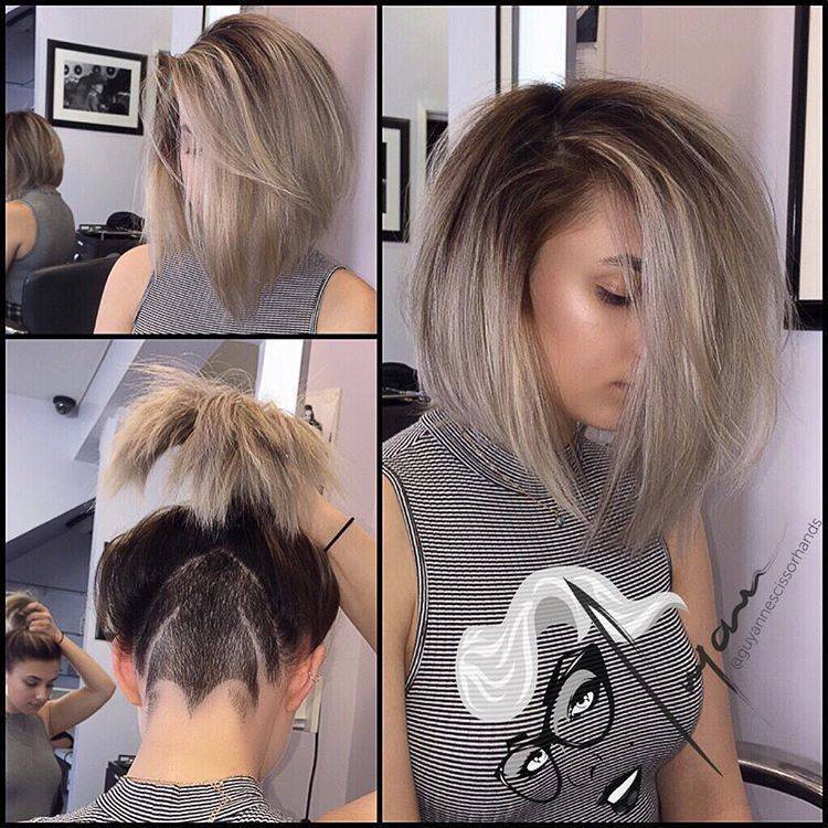 - На коротких волосах лучше всего делать яркие акценты. Креативные техники окрашивания, необычные цвета подчеркнут форму вашей стрижки и сделают ее эффектнее. Абсолютным трендом покраски волос короткой длины является трафаретная техника.