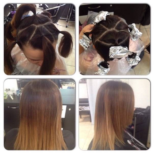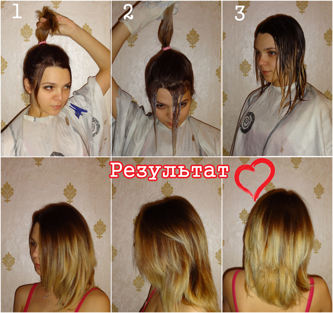 Именно такой техникой пользуются многие мастера в салонах красоты. Для того, чтобы сделать такое окрашивание самостоятельно, вам потребуется помощь. Иначе линия окраса и перехода оттенков получится неравномерной. Последовательность действий:
