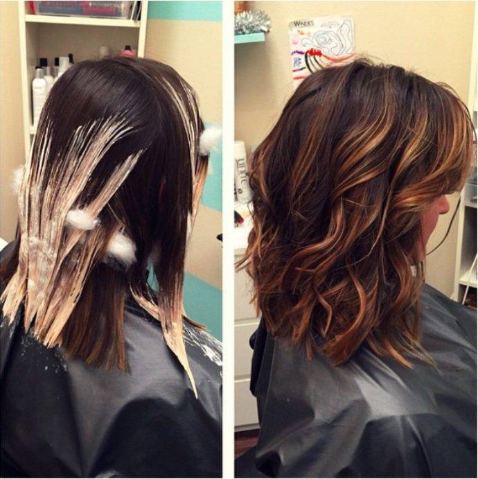 Способ покраски локонов быстро набрал популярность в индустрии красоты. Связано это с широким выбором оттенков для окрашивания и с тем, что такая техника подходит одинаково хорошо для блондинок и брюнеток. Делают его на короткие, средние и длинные волосы.