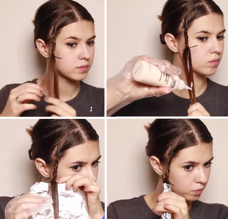 - как при технике со жгутиками, окрасить примерно 5 см от кончиков волос. Замотать в фольгу;