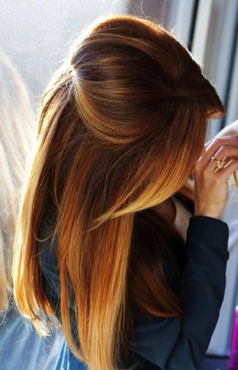 6. Карамельное, медовое и коньячное омбре на темные волосы