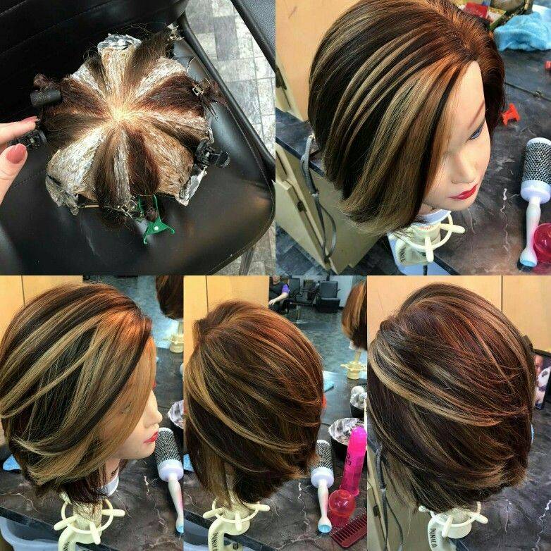 - используется несколько тонов: приближенный к натуральному цвету, и несколько более светлых. Если есть челка, её окрашивать не нужно.