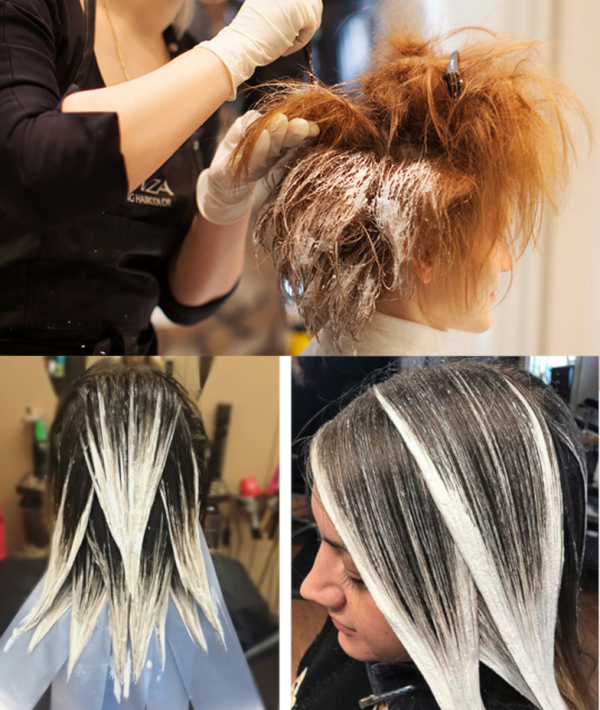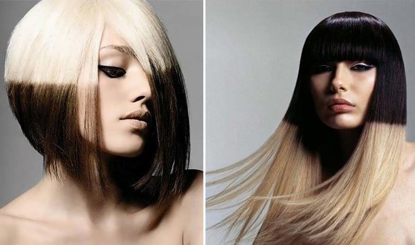 Это черно-белое окрашивание с резким переходом из одного цвета в другой. Весьма смелый вариант.
