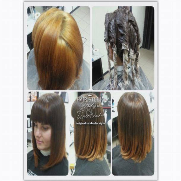 - опять окрасить волосы, но уже поверх ранее окрашенного места + 5 см;