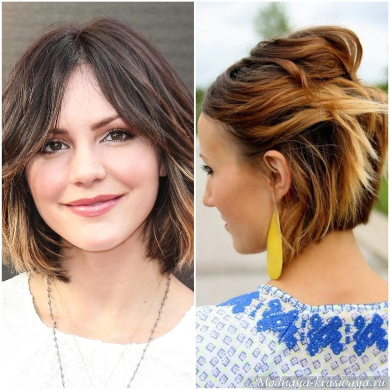 - Средние. Обычно большинство девушек имеют длину волос до плеч или подбородка. Распространёнными причёсками выступают боб с удлинением и каре. Для волос средней длины часто выбирают брондирование или классическое омбре, хотя не стоит забывать и о бликующем виде.