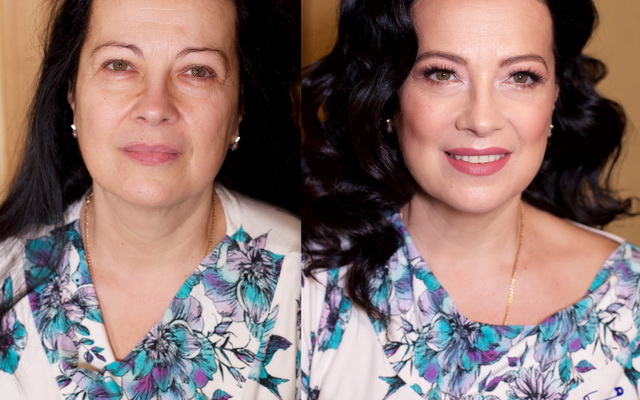 Фото «до» и «после» омолаживающего лифтинг-макияжа