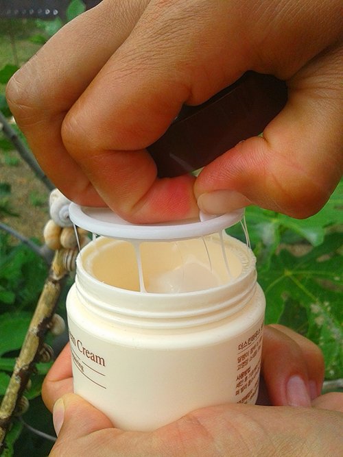 Подобные составы отличаются от привычных кремов по консистенции: они тягучие, желеобразные. Это объясняется наличием в них слизи. Поэтому и наносят крем по-особому — распределяют малыми порциями с последующим вбиванием в кожу пальцами. Легкое похлопывание продолжают до полного впитывания. Доставать массу из баночки удобнее специальной косметической лопаткой, которая у некоторых производителей предусмотрена в комплекте.