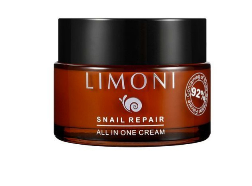 | Limoni Snail Repair | Это средство по уходу за чувствительной и сухой кожей лица. Включает около 60% улиточного секрета. Эффективно осветляет, разглаживает мелкие морщины, выравнивает тон лица и защищает от ультрафиолета. Обладает неоднородной консистенцией, поэтому после нанесения не втирается, а вбивается пальцами. Цена за единицу – 25 долларов |  |