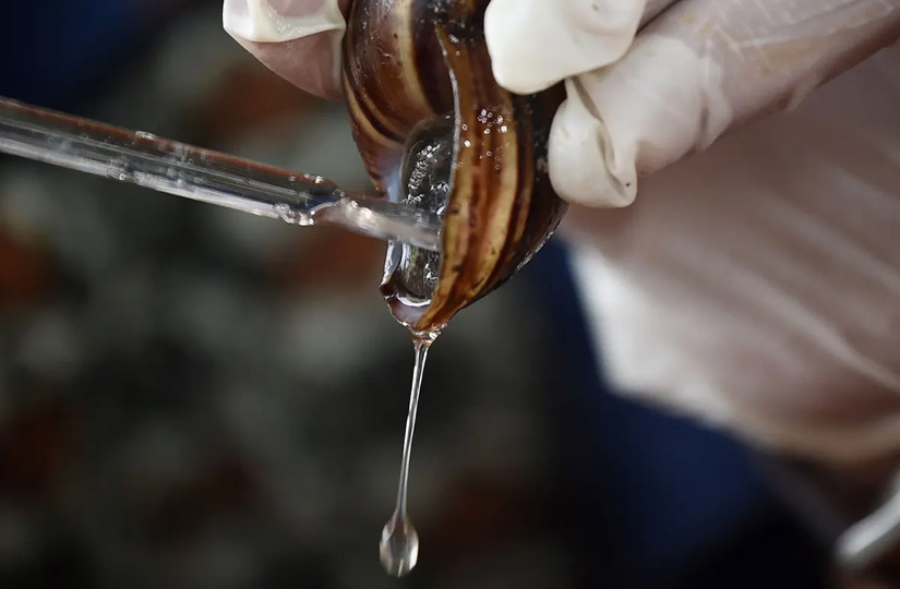 Сам процесс сбора секрета состоит в том, чтобы заставить улитку испытать стресс, благодаря которому выделяется густой пенистый муцин. Для этого существуют два способа: