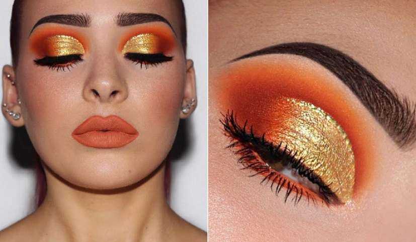 Техника нанесения оранжевых теней для вечернего или праздничного макияжа