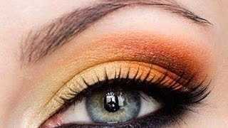 Оранжевые тени могут быть нанесены на все веко или использованы в качестве акцента на внутреннем или внешнем углу глаза. Несколько вариантов макияжа с оранжевыми тенями: