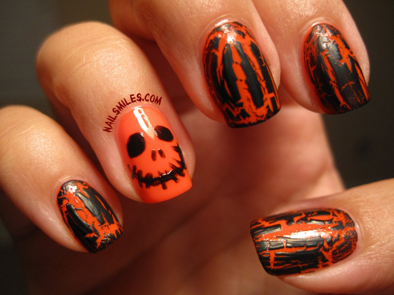Говоря о черно-оранжевом маникюре, нельзя не упомянуть о дизайне на Хэллоуин. Это наиболее актуальная комбинация цветов для этого «устрашающего» праздника. Причем доминировать в этой парочке будет именно оранжевый, который разбавит слишком мрачные черные нейл-арты. Что рисовать на ноготках на Хэллоуин, зависит только от вашей фантазии. С нашем стороны мы можем подкинуть вам десяток новых оригинальных фото-идей.
