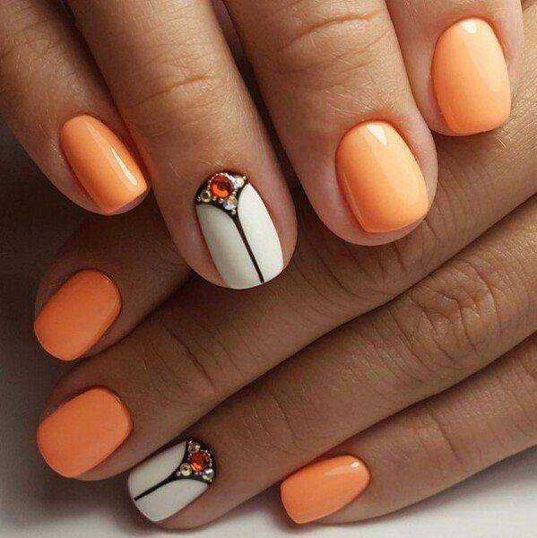 В маникюре можно применять любые сочетания, перечисленные выше. Главное, не перегрузить дизайн декором, ведь оранжевый сам по себе является полным и насыщенным цветом.