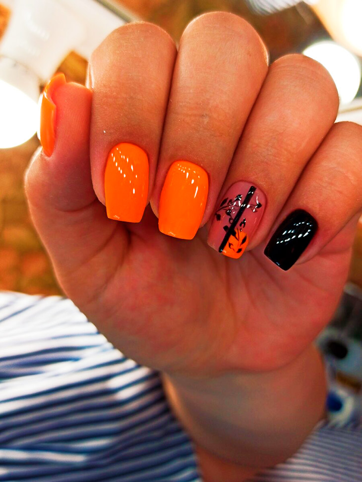 Черно-оранжевый маникюр: яркие идеи для сочного дизайна