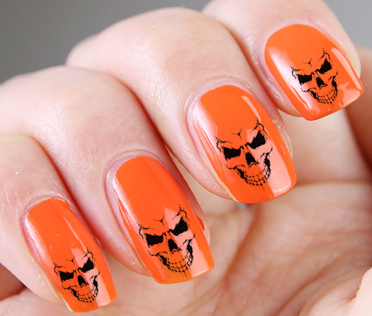 Говоря о черно-оранжевом маникюре, нельзя не упомянуть о дизайне на Хэллоуин. Это наиболее актуальная комбинация цветов для этого «устрашающего» праздника. Причем доминировать в этой парочке будет именно оранжевый, который разбавит слишком мрачные черные нейл-арты. Что рисовать на ноготках на Хэллоуин, зависит только от вашей фантазии. С нашем стороны мы можем подкинуть вам десяток новых оригинальных фото-идей.
