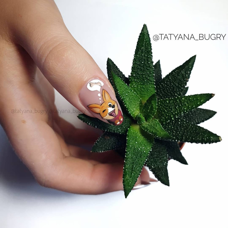 Такое предложение по праву можно назвать новинкой сезона. Забавная лисичка на ногтях – это не только красиво, но и очень оригинально. Такой маникюр не останется незамеченным, и скучным его уж точно никто не назовет