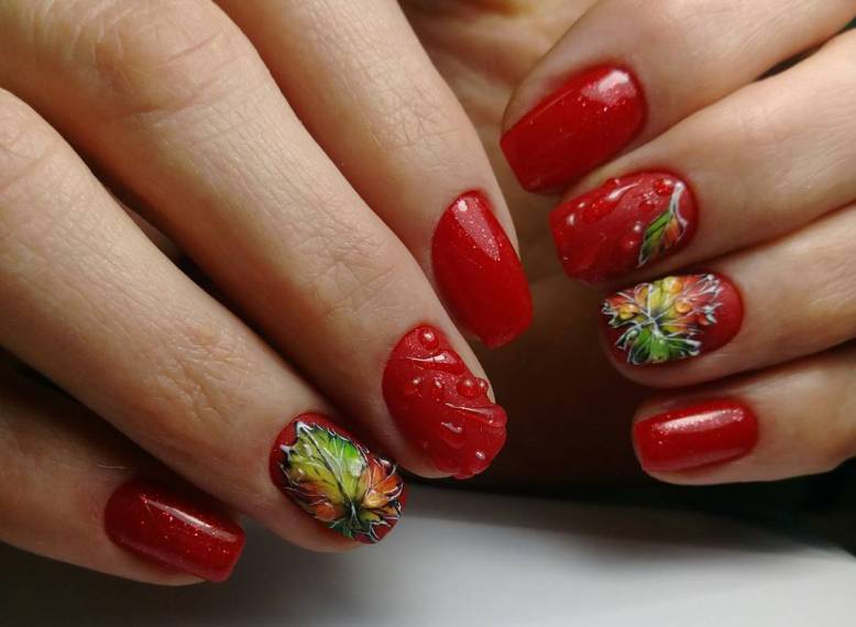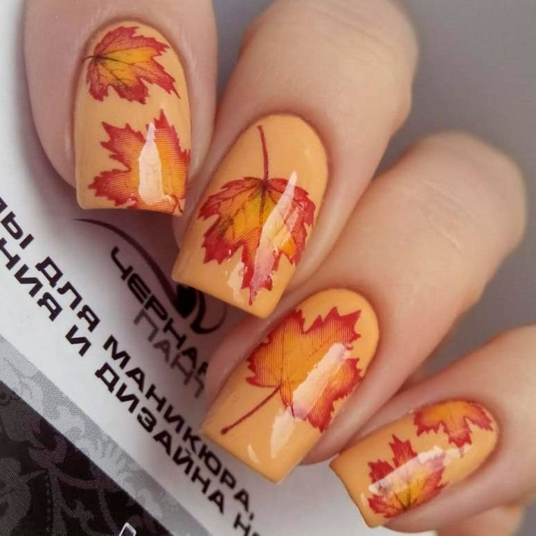 Красивые идеи маникюра осень 2023 с листьями